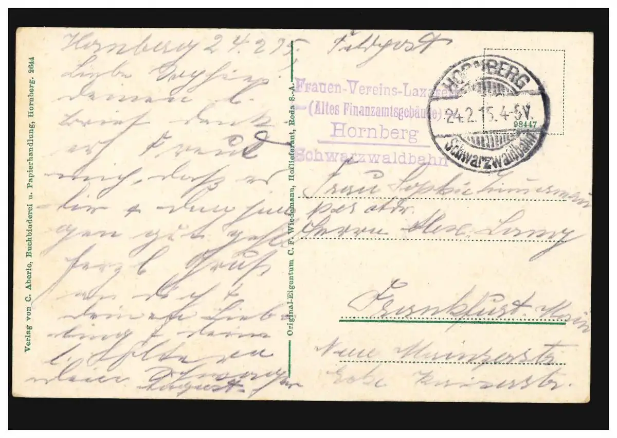 AK Hornberg: Panorama, 24.2.1915 BS Femmes-Association-Hôpital Schwarzwaldbahn