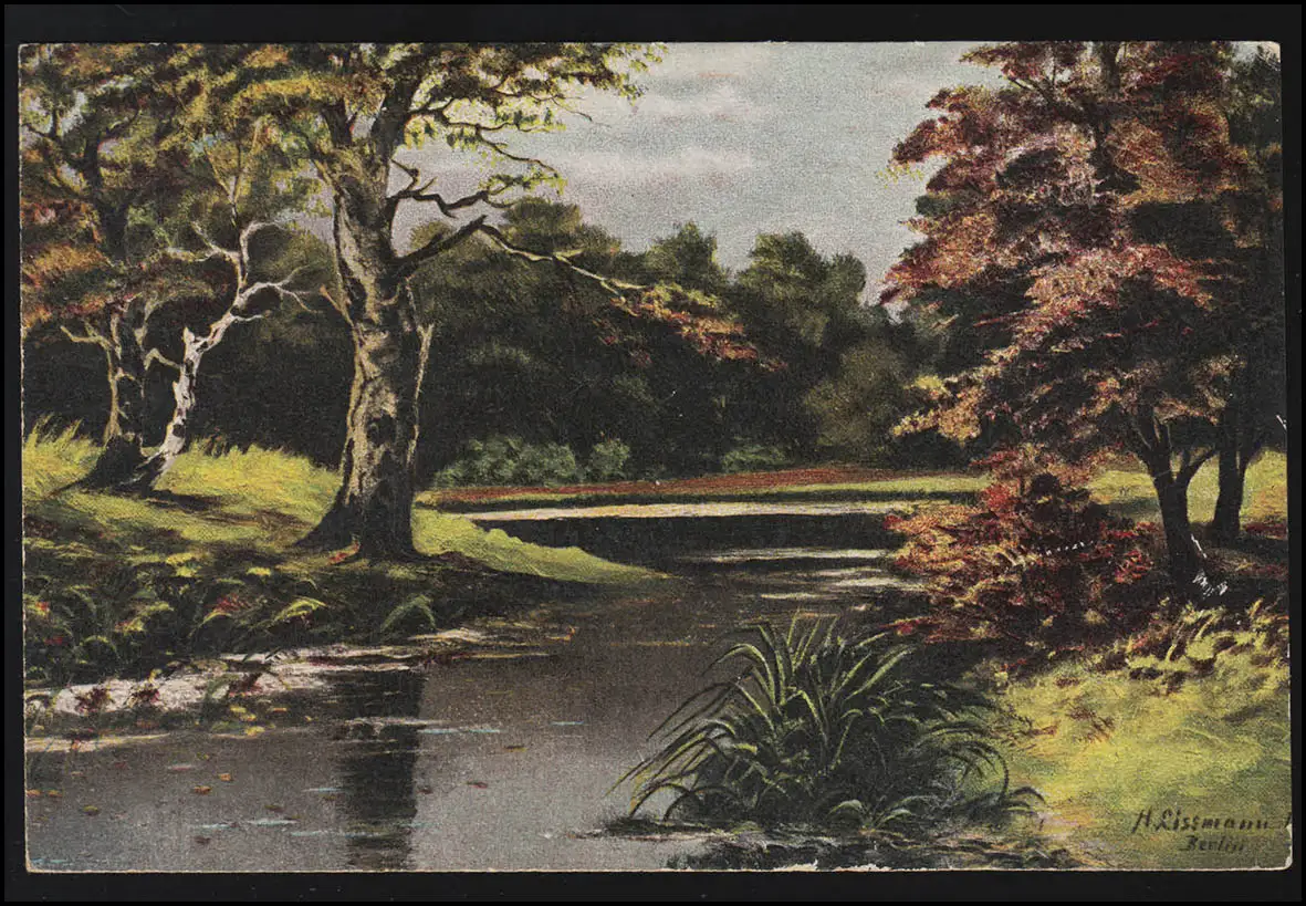 AK Hugo Lissmann: Paysage fluvial dans les bois, Feldpost WILHELMSHAVEN 1917