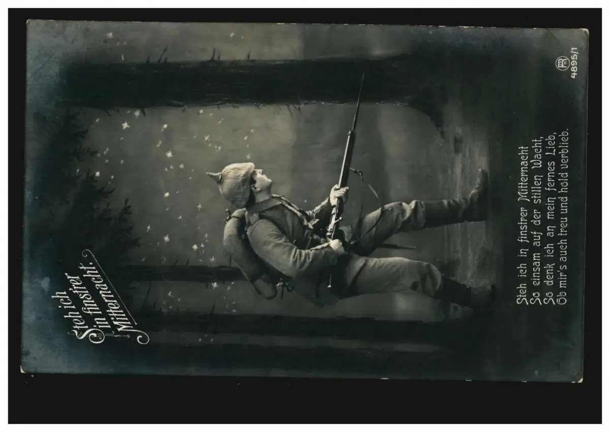 AK Je suis à minuit: soldat avec fusil, post de champ 7.5.15 avec BS