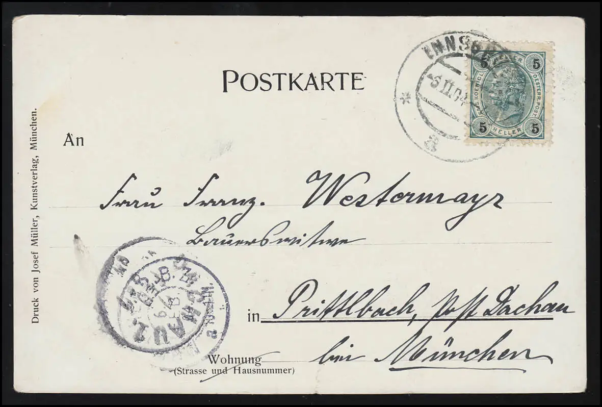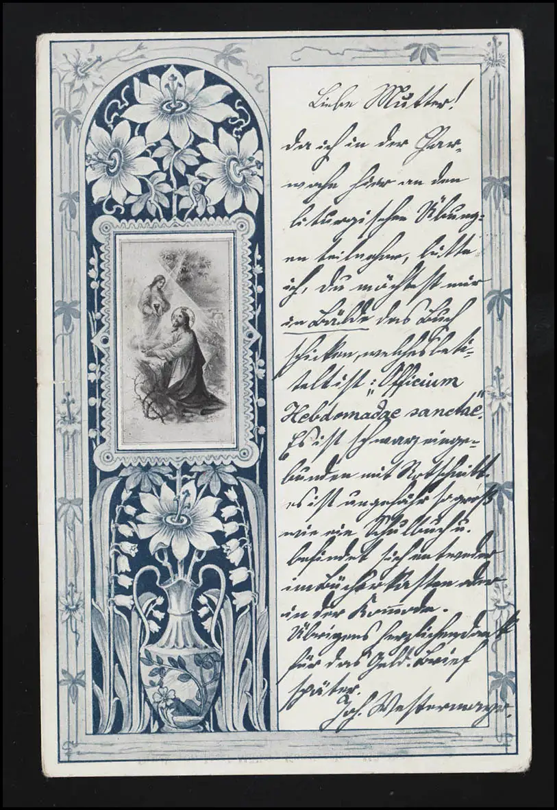 AK Jésus priant Fayence Peinture, ornements, fleurs, INNSBRUCK/DACHAU 9.2.1904