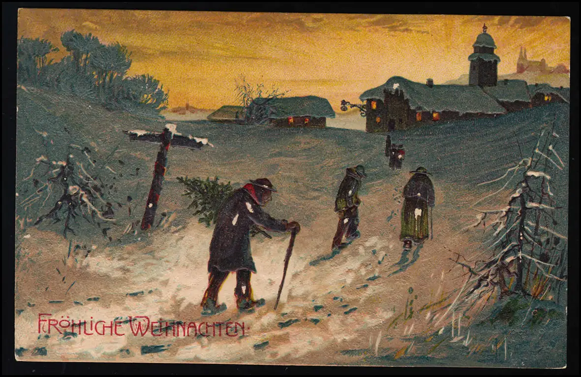 AK Joyeux Noël, Série 6141 le cours de l'église dans la neige profonde, 18.11.1907