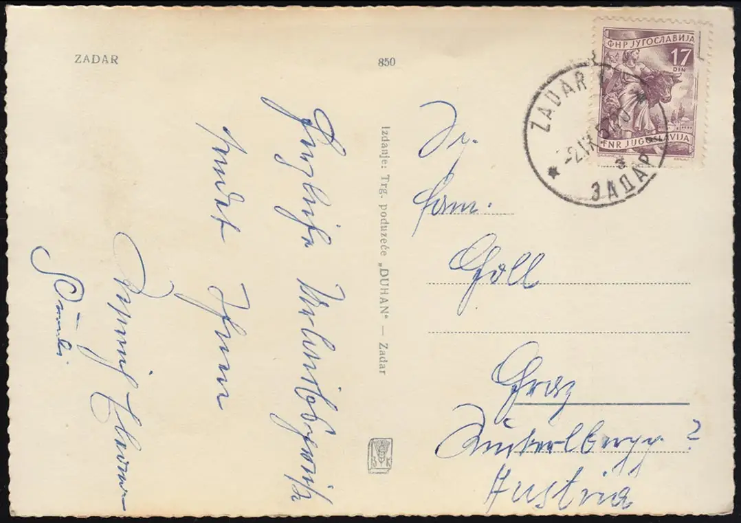 AK Yougoslavie: Eglise de Zadar avec EF 760, ZADAR 2.9.1957 à Graz/Autriche