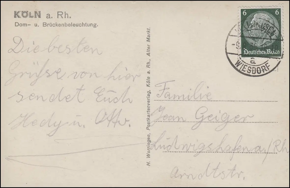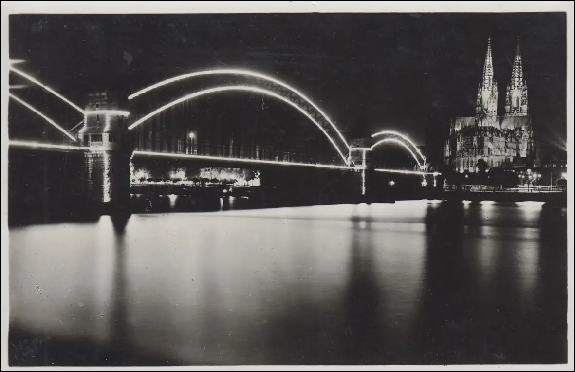 AK KÖLN am Rhein Dom- und Pont-Eclairage, LEVERKUSEN-WIESDORF 9.8.1935