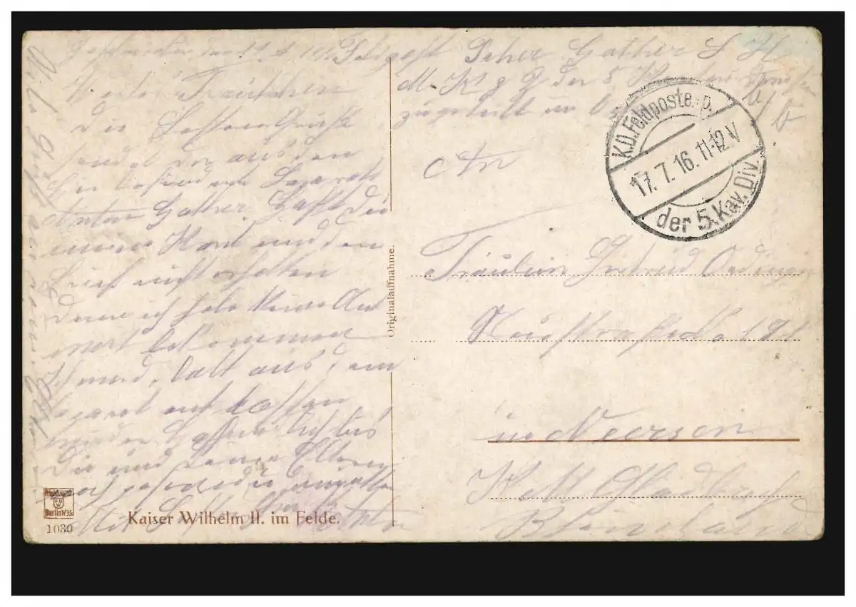 AK Kaiser Guillaume II dans le champ, en tant que carte postale de champ 17.7.1916