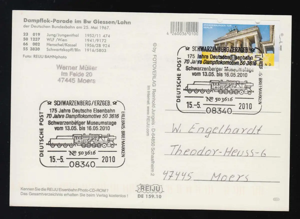 AK Kamkolok 23 019/ 50 1237/ 66 002/ 55 3830, SSt SCHWARZENBERG, 15.5.2010