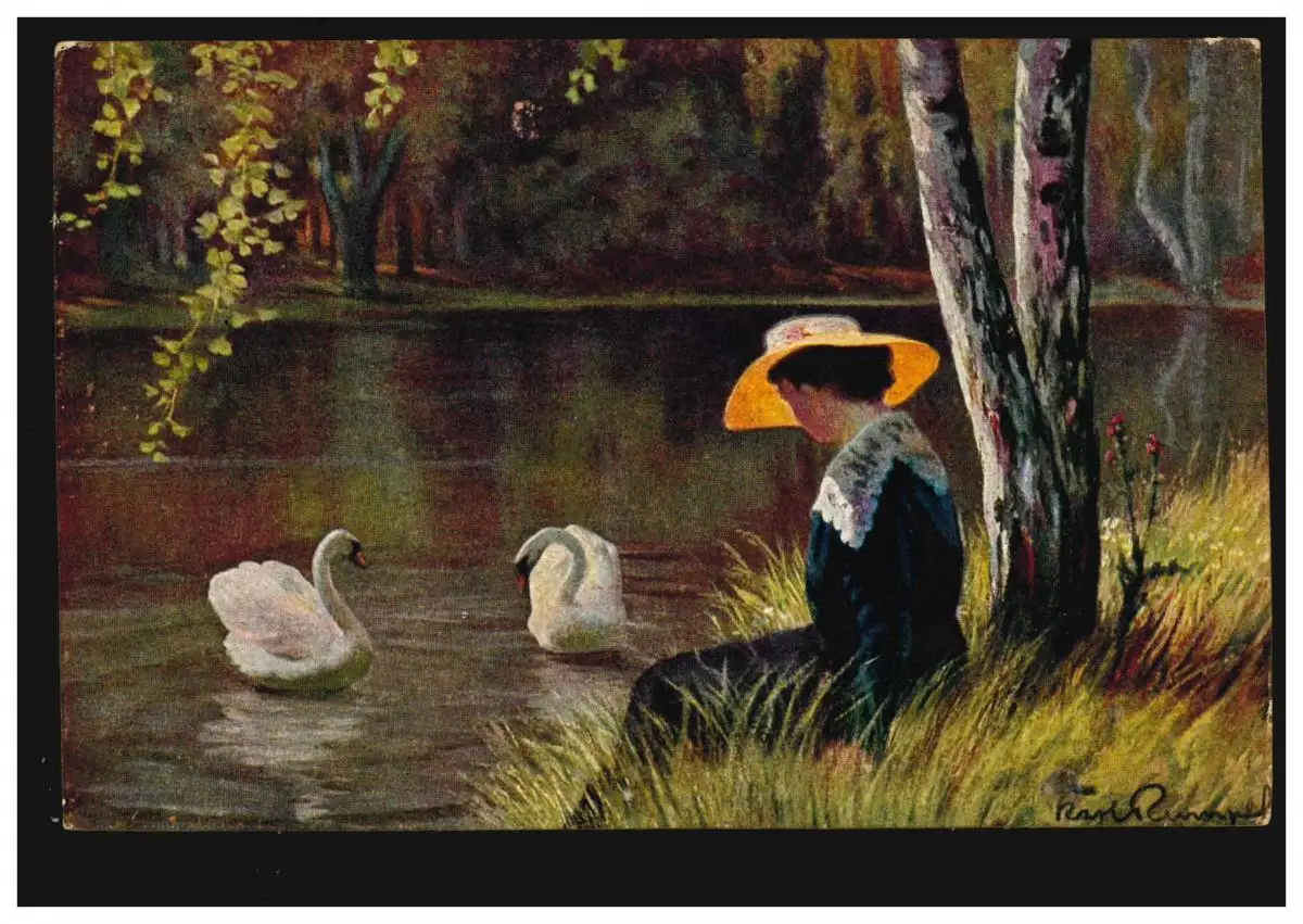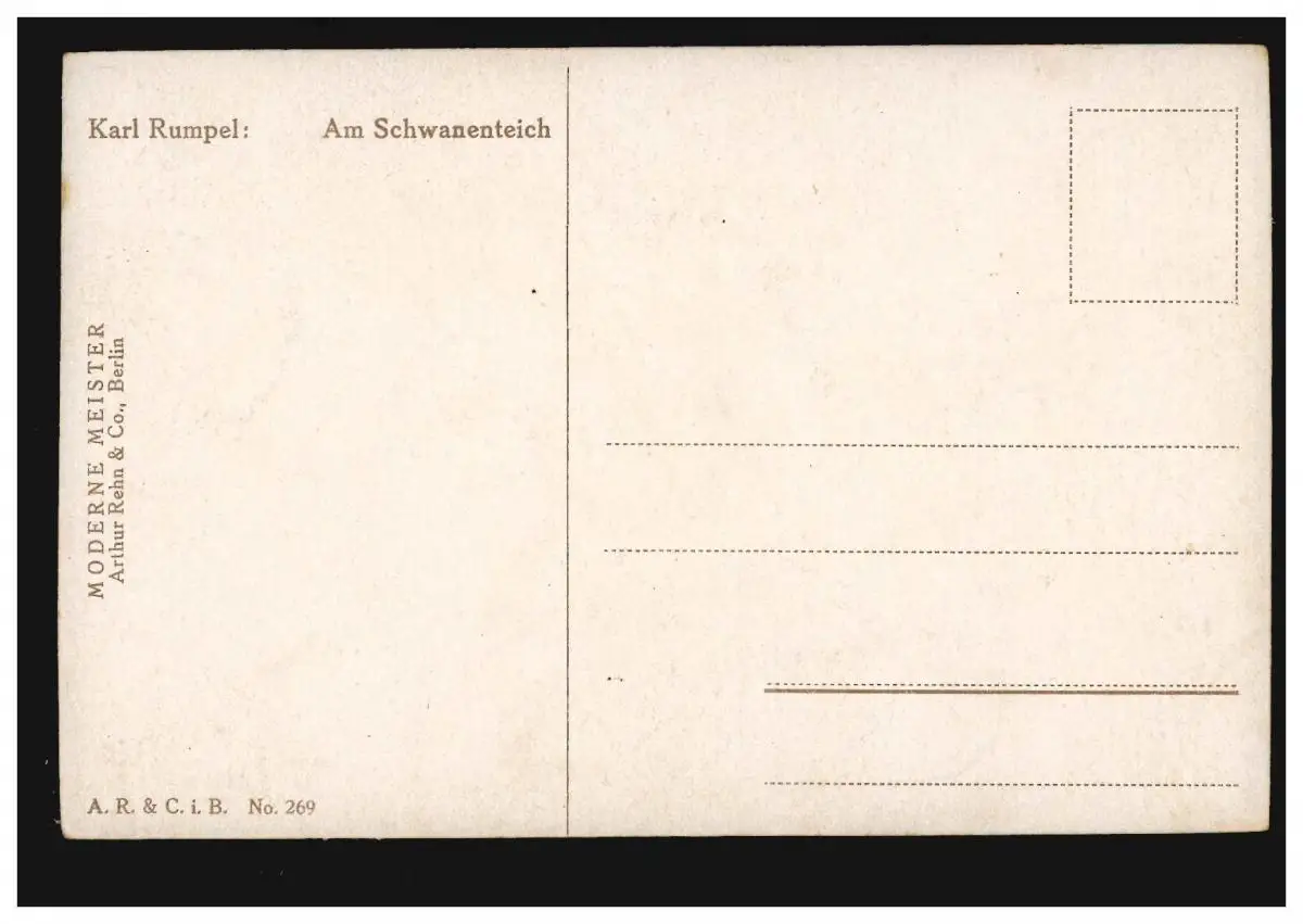 AK Karl Rumple: Am Schwanenteich, Moderne Maître Berlin, inutilisé