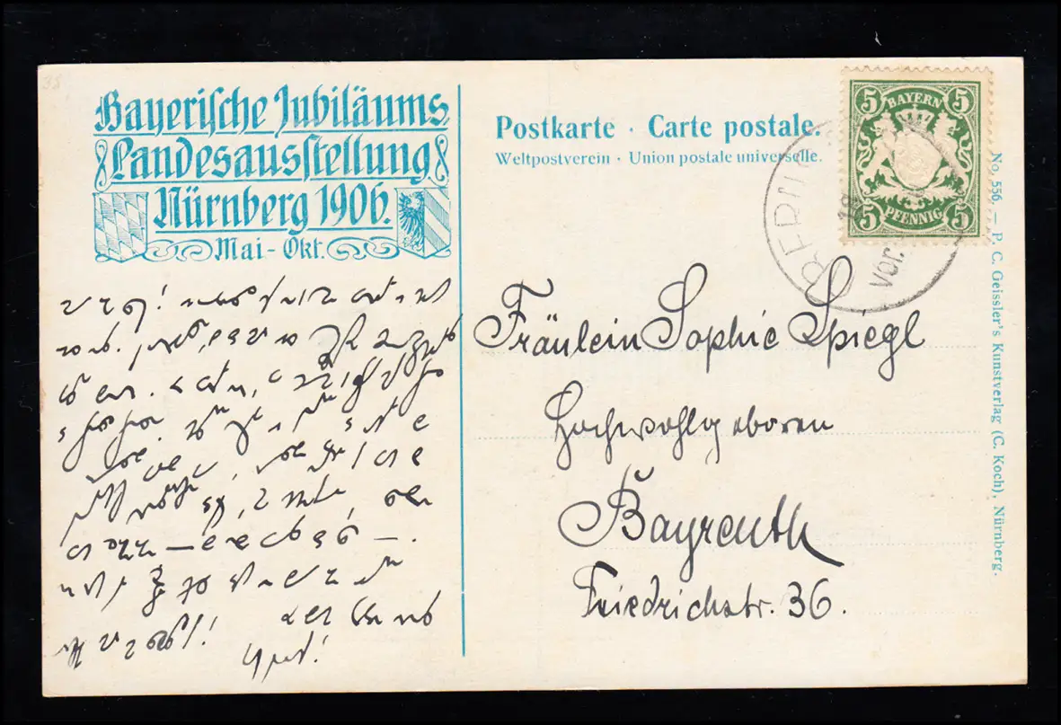 Carte postale spéciale Bayerische Jubilé- und Landessexposition Nuremberg Mai-Octobre 1906 Examen: original Référence produit: 00000000035991