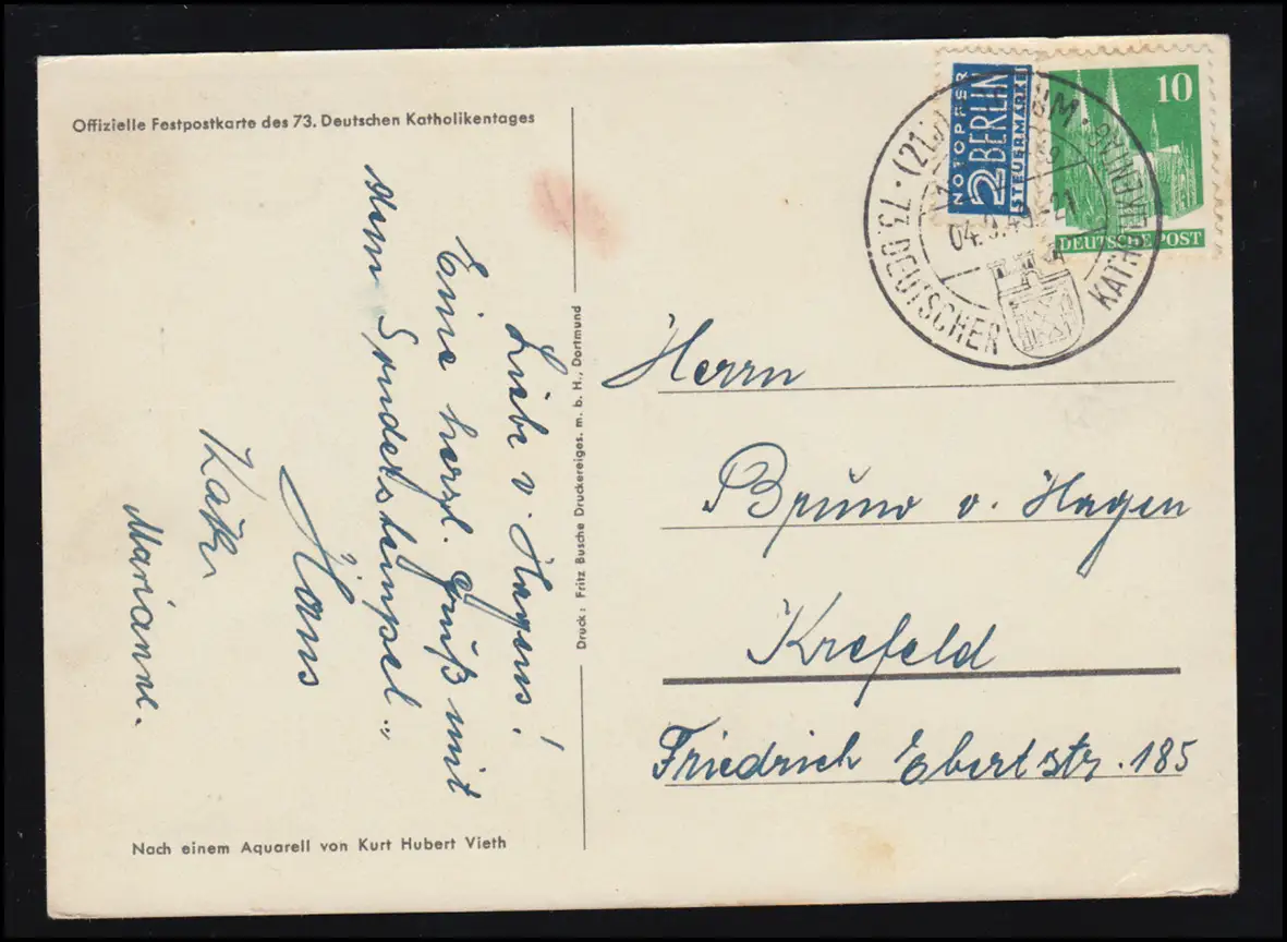 AK Kurt Hubert Vieth: 73ème Journée catholique allemande Bochum 1949, SSt correspondant