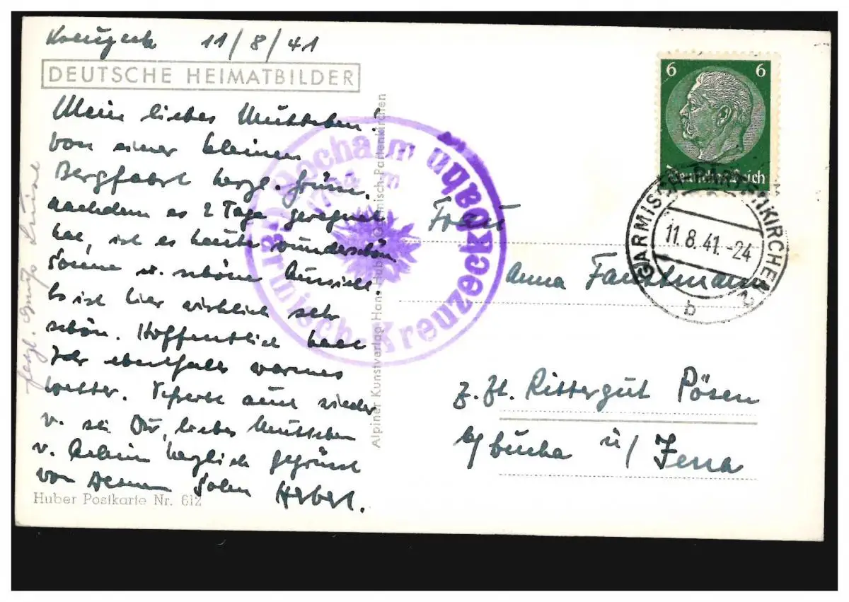 Photos allemandes - Carte postale Huber numéro 612 / cachet de la marque Hochalm GARMISCH-KREUZECKBAHN, cachet du jour GAREMISCHE-PARTENKIRCHEN 11.8.1941 Vérification: original Référence produit: 00000000041693>Remarque: Cet article n'est disponible qu'une seule fois. Vous recevrez exactement l'article représenté.