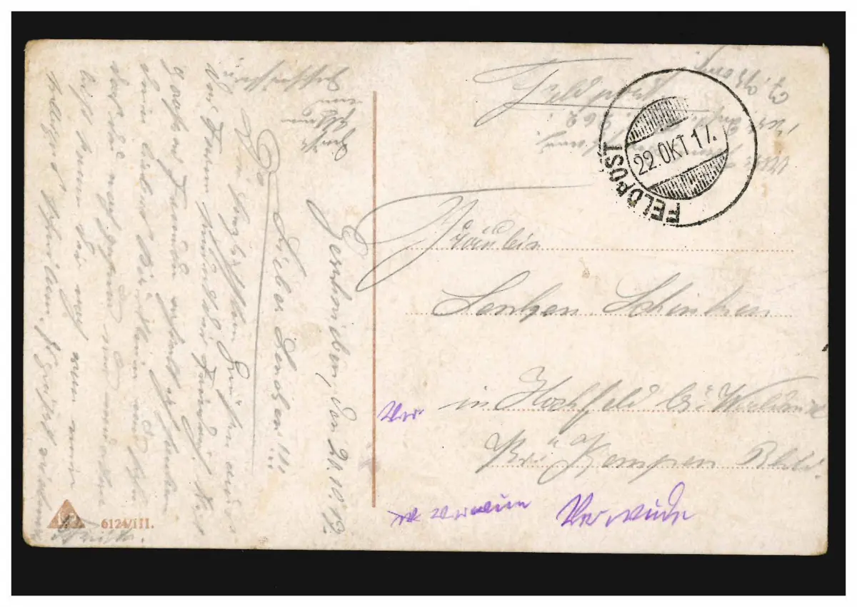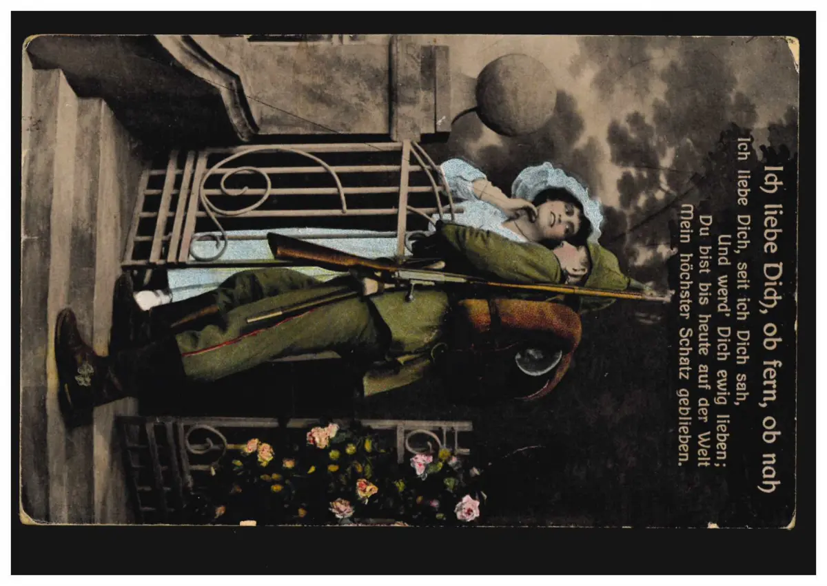 AK Le départ: Je t'aime, si loin, près ..., Posté le 22.10.1917