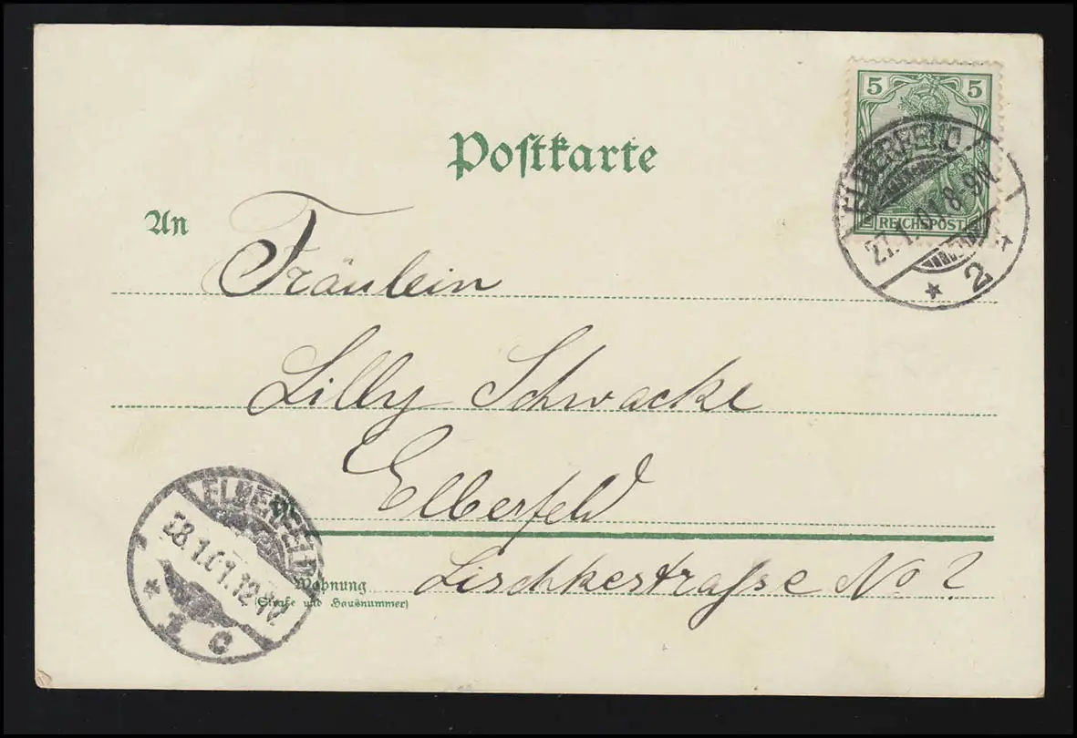 AK Amour, homme fait signe et hante jeune femme par des prés, ELBERFELD27.1.1901
