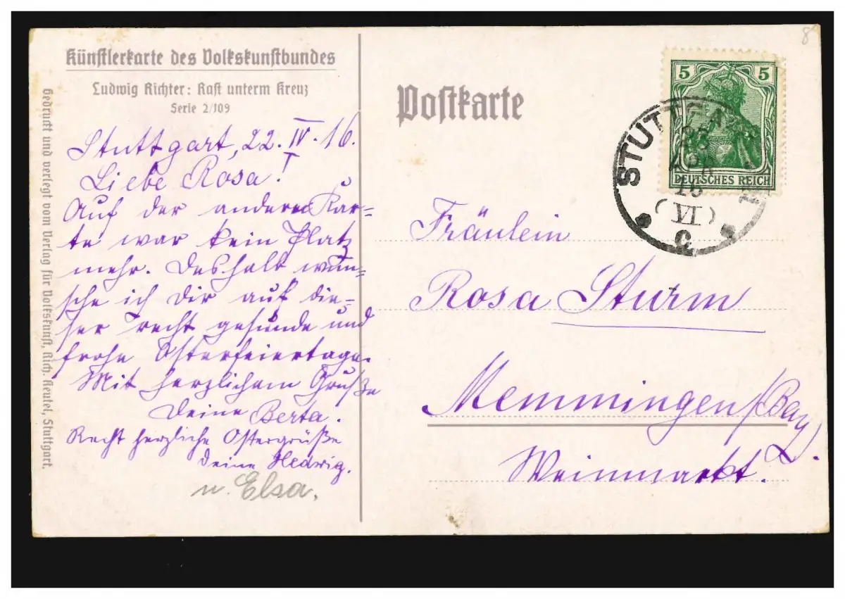 AK Ludwig Richter: Kraft sous la croix, STUTTGART 23.4.1916