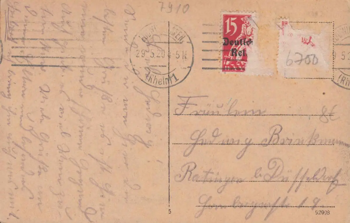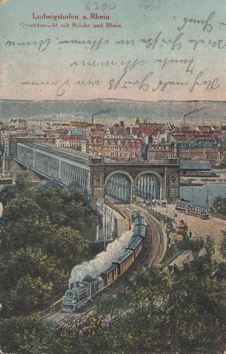 AK Ludwigshafen/Rhin: vue d'ensemble avec pont, chemin de fer et Rhin, 29.5.1920