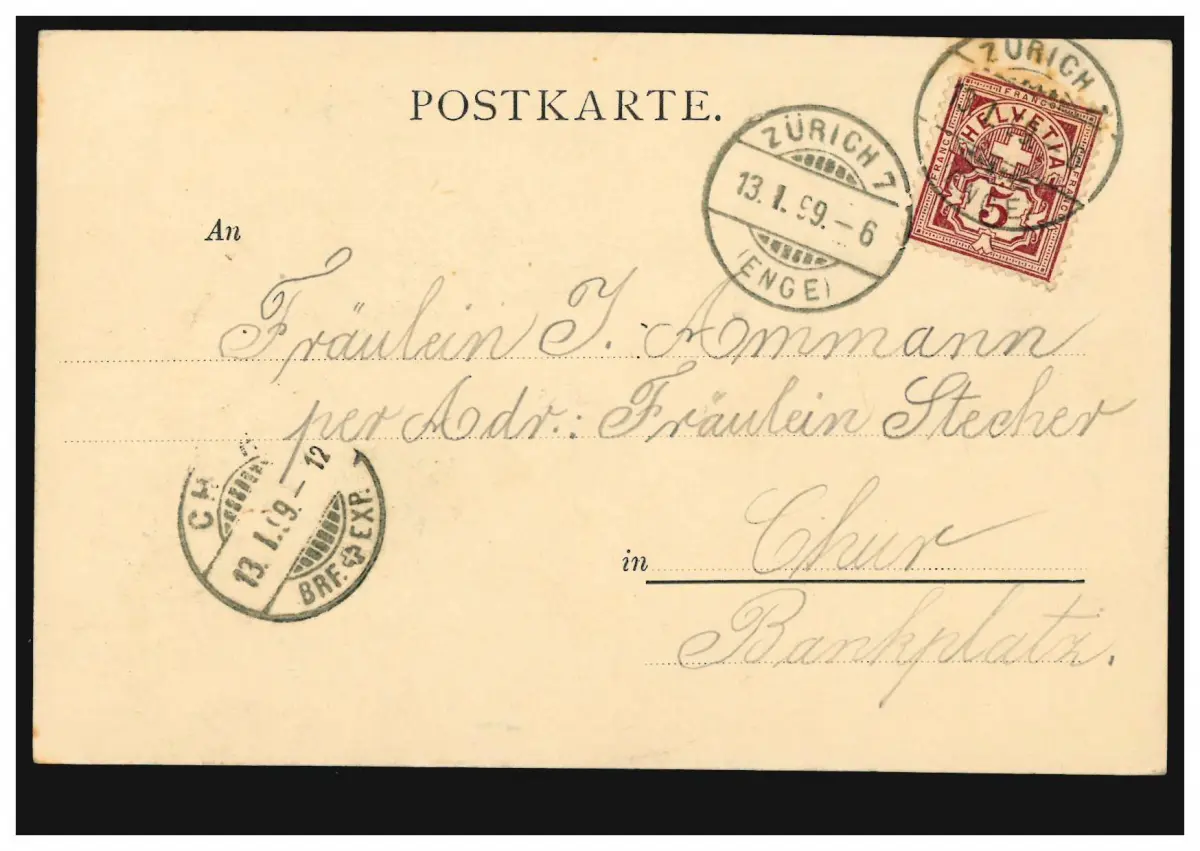 AK Luigi Bechi: Fiori, ZÜRICH 7 (ENGE) 13.1.1899 vers CHUR 13.1.99