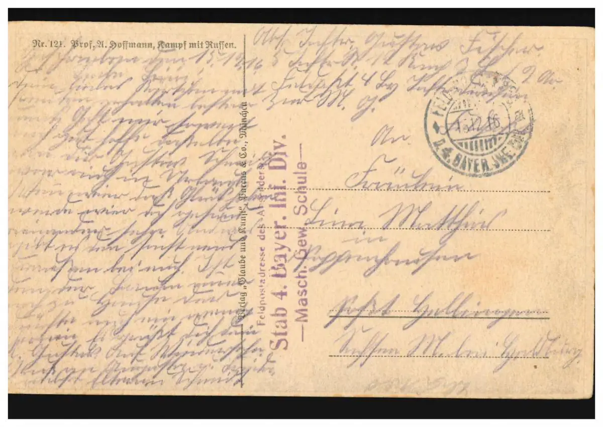 AK Lutte avec les Russes, Poste de terrain Bayer. BS Inf. Div. Masch.-Filet-école 15.12.16