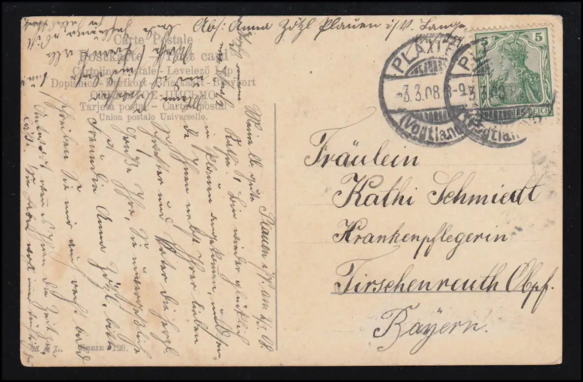 Deutsch. 1,12 / PLAUEN (VOGTLAND) 3.8.1908 Examen: original Référence produit: 00000000017762