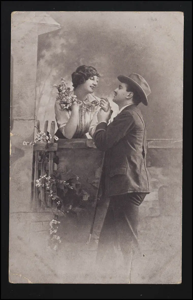 AK Mann tient tendrement la main de jeune femme, HASBERGEN 16.2.1916