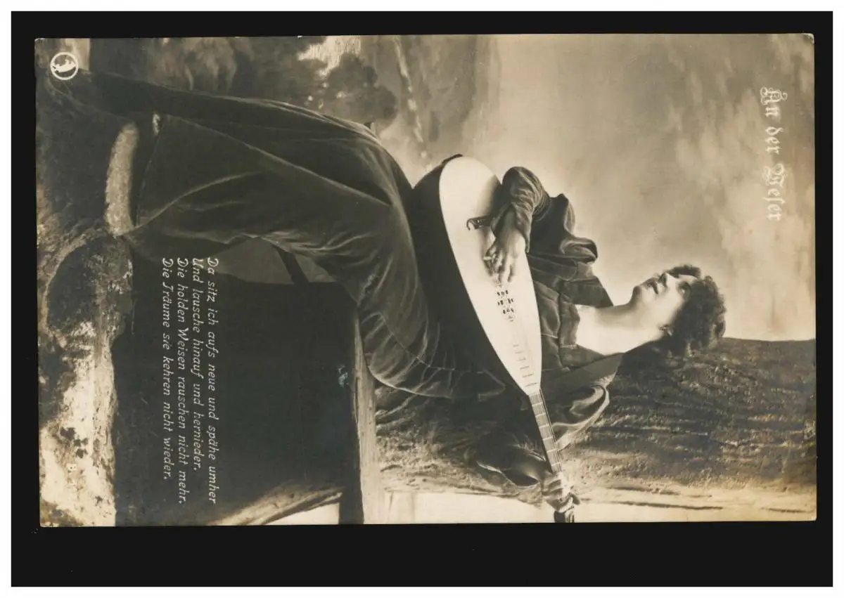 AK Mode A la Weser - Femme rêveuse avec Mandoline, DESSAU 24.2.1908
