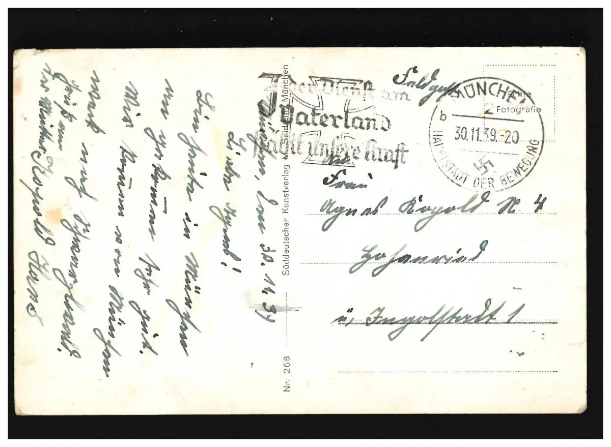 AK Munich Mairie, Feldpost, Munich 30.11.1939