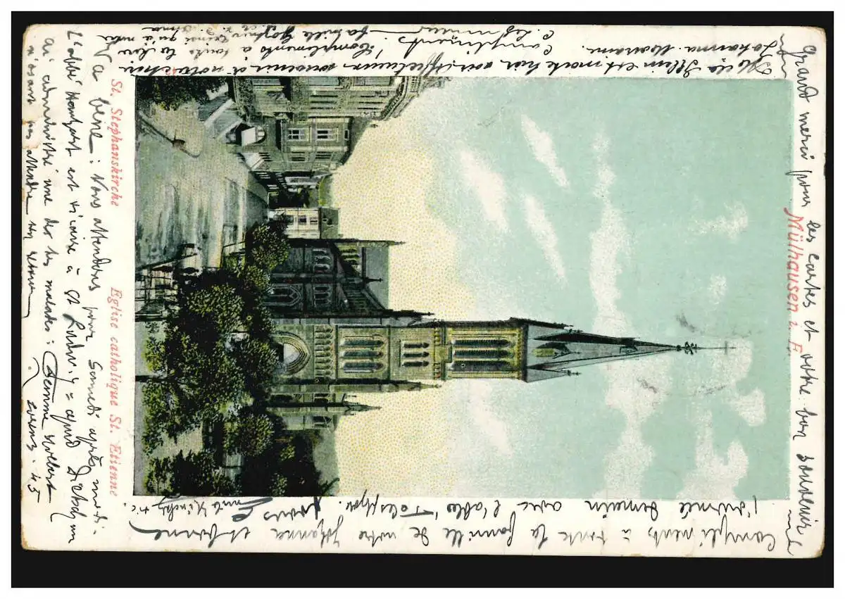 AK Mulhouse / Alsace: St. Stephanskirche, 27.8.2003 vers ROCKENHAUSEN 27.8.03