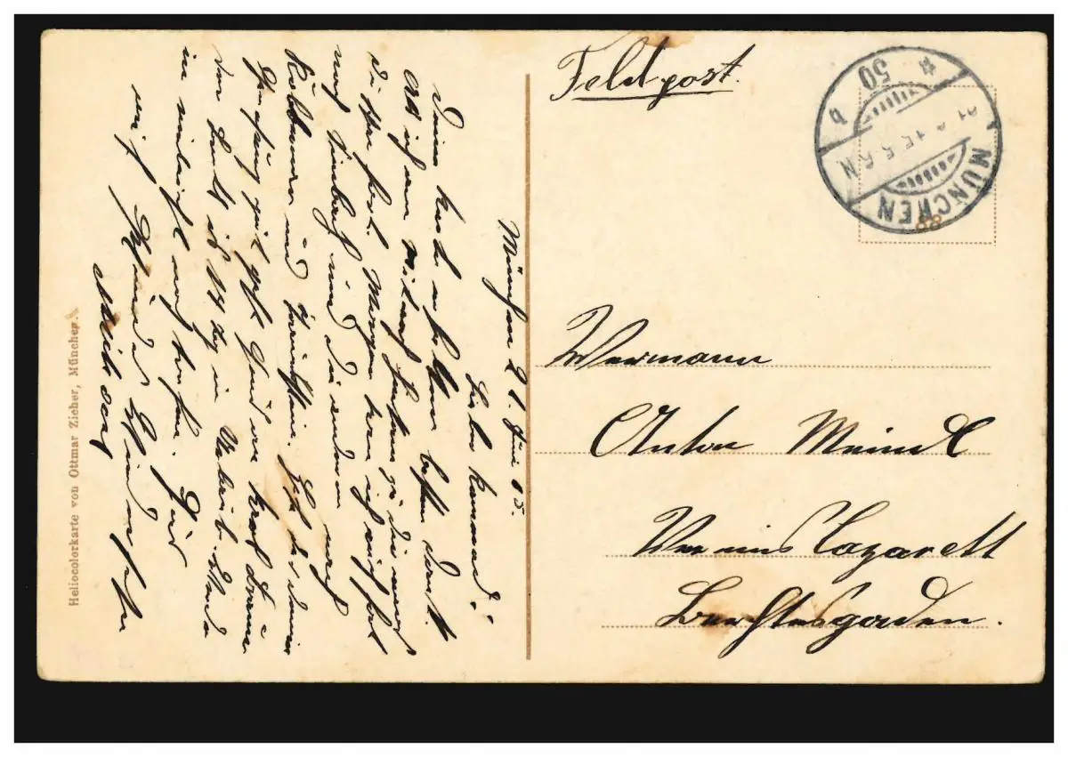 AK Munich: Eglise féminine, Feldpost München 50 b - 21.6.1915