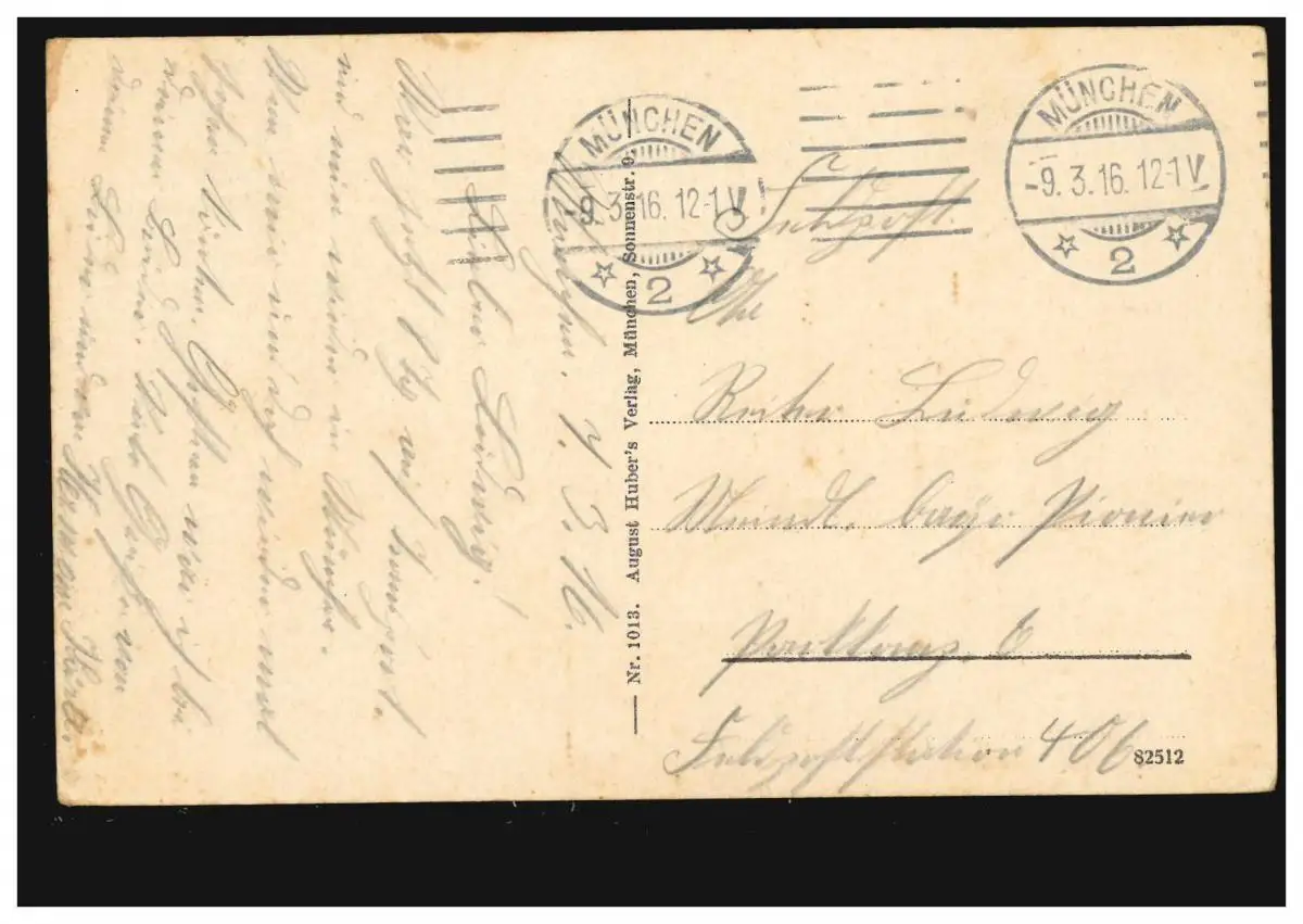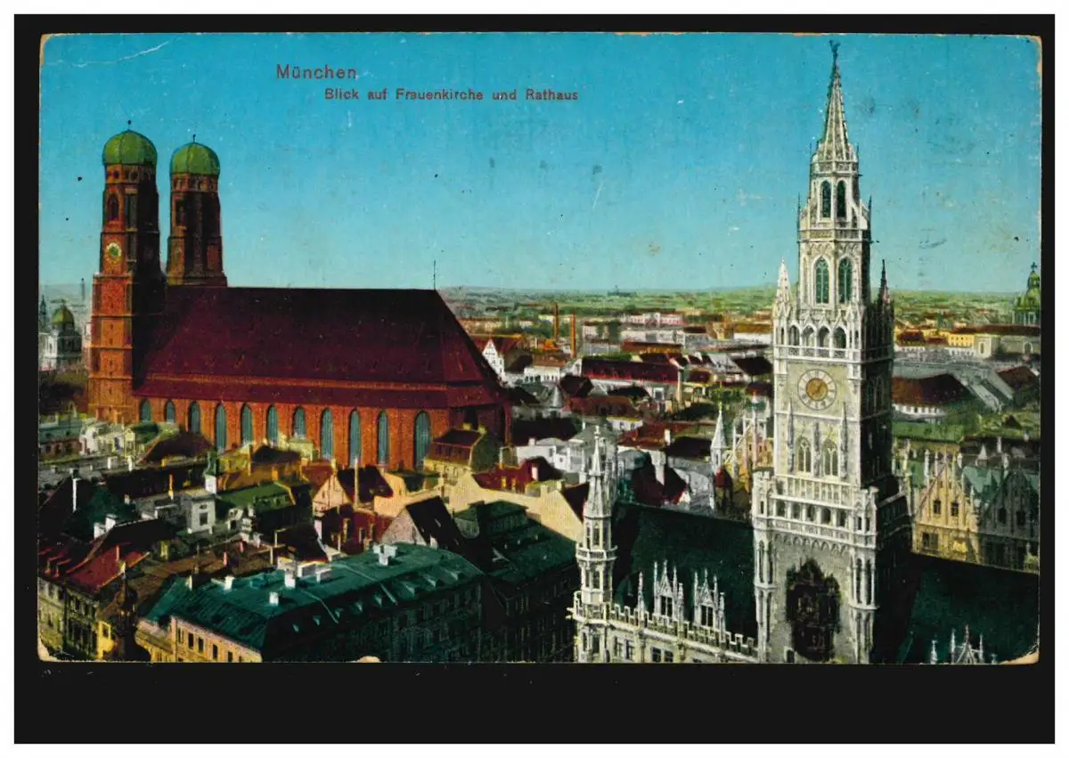 AK Munich: vue sur l'église des femmes et l 'hôtel de ville, poste de terrain MUNICH 2 - 9.3.1916