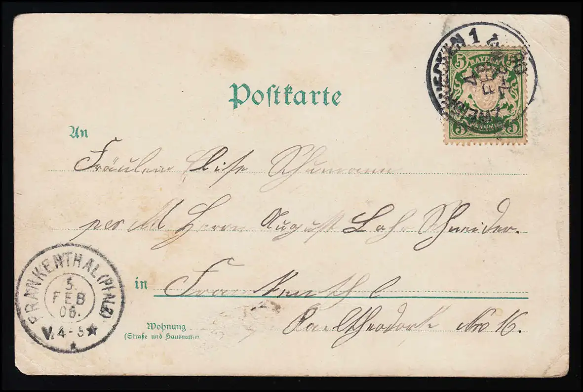 AK No. 254 Comment le soldat se réjouit de la poste DEUX-DEUX RETOURS / FRANKENTHAL 4/5.2.1906