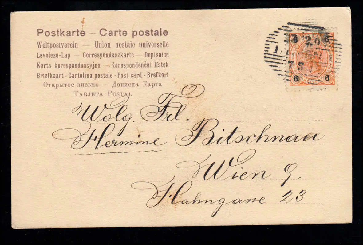 AK Noël: Amor déguisé en facteur avec lampe, VIENNE vers 1900