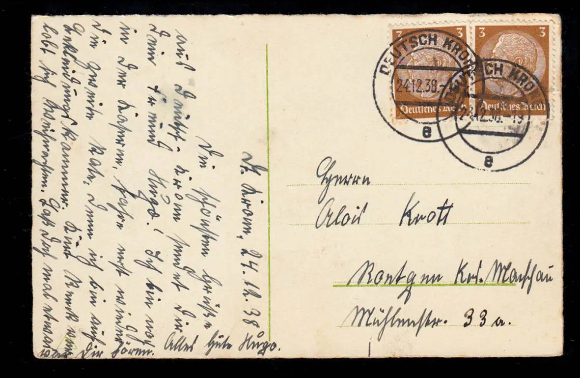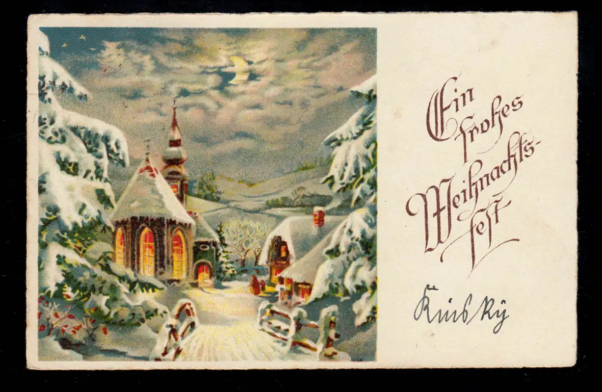 AK Noël: Dorfidylle la nuit avec l'église éclairée, FRANÇAIS KRONE 1938