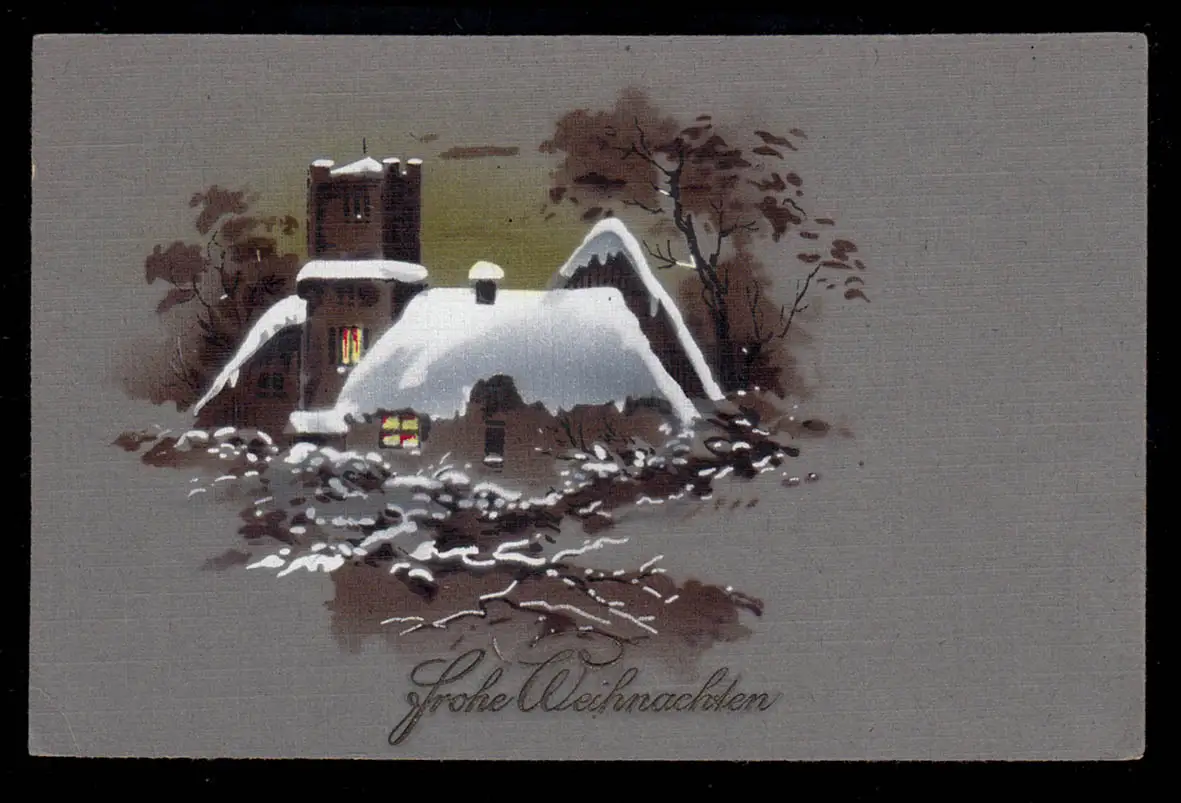 AK Noël: Église éclairée neigeux dans la nuit, inutilisé