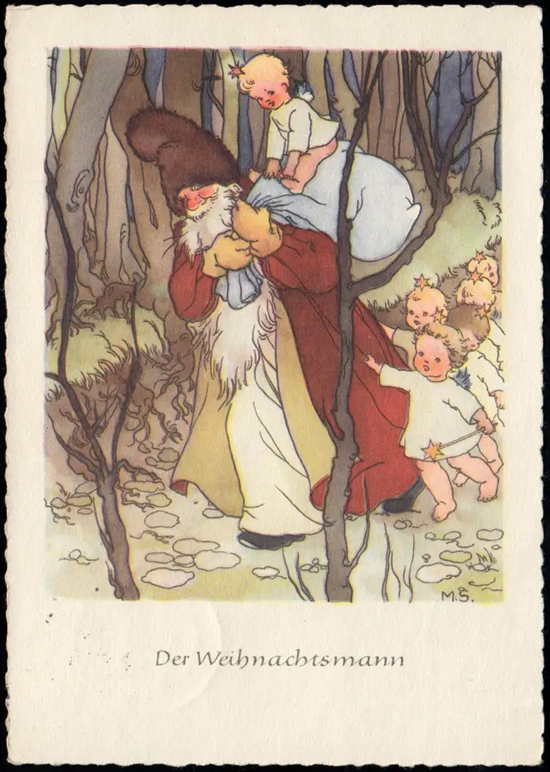 AK Noël: Margret Savelsberg - Père Noël avec Anges, HAMBURG 1951
