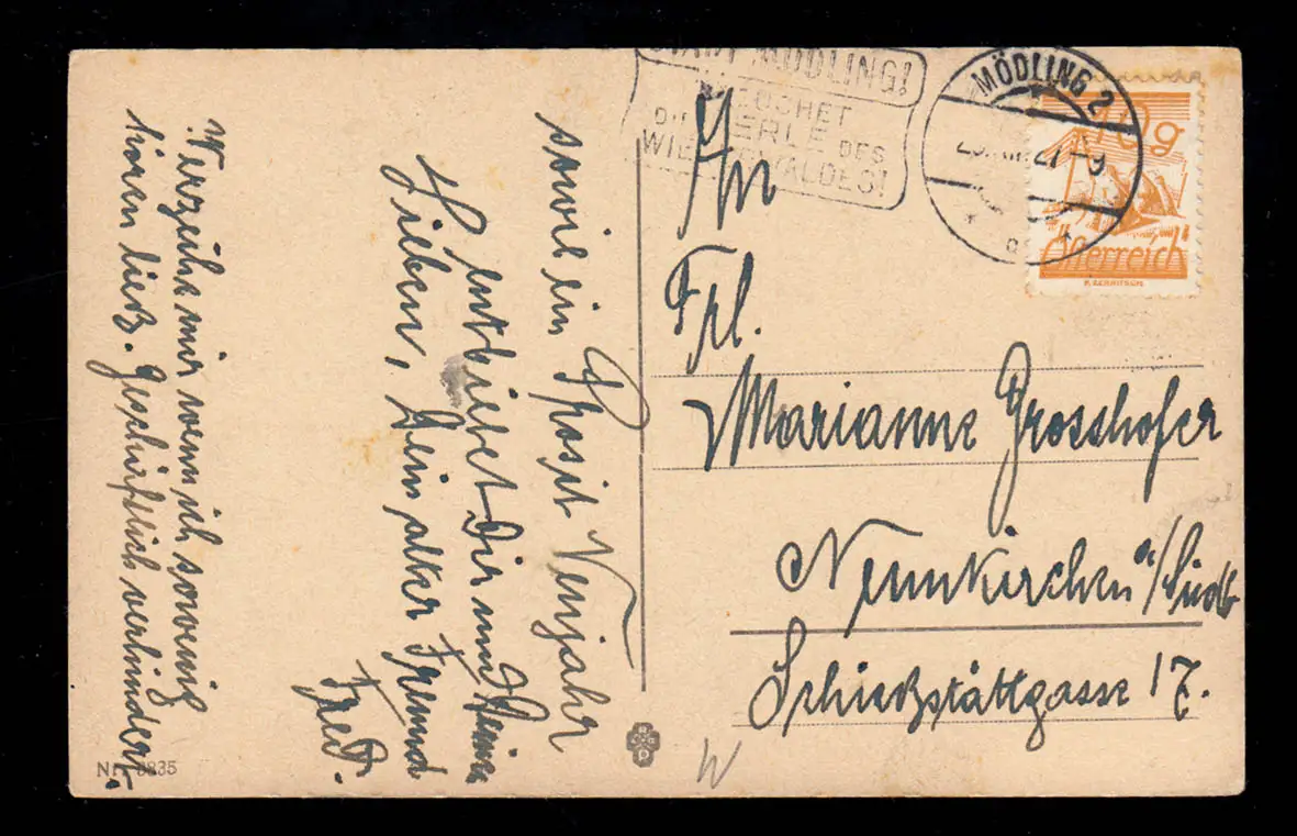 AK Noël: Paire d'amour sous parapluie avec cadeaux, MÖDLING 1927