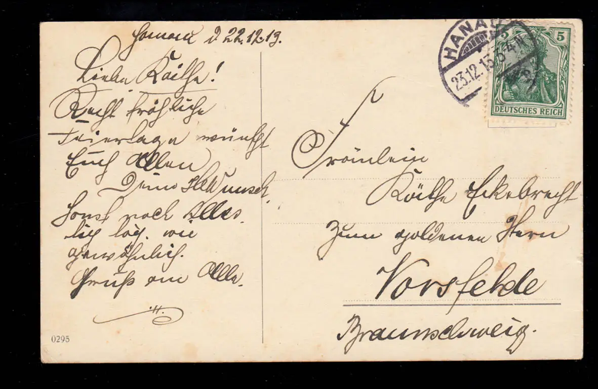 AK Noël: Paysage - Un couple d'amoureux souriant dans la neige HANAU 23.12.13