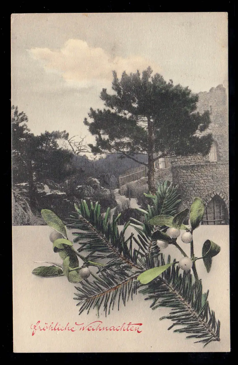 AK Noël: Ruine du château avec sapin et baie, VIENNE 23.12.1908