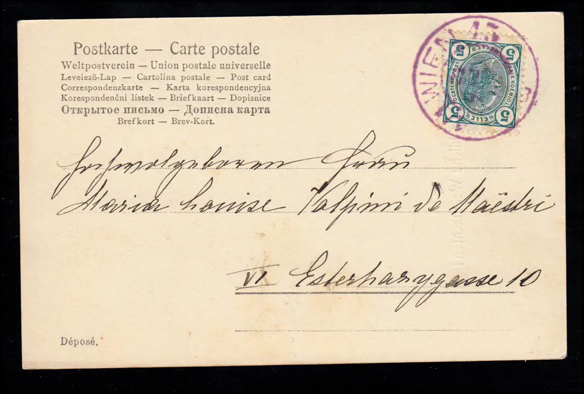 AK Noël: paysage hivernal avec moulin, cachet violet 1/ 1 VIENNE vers 1905