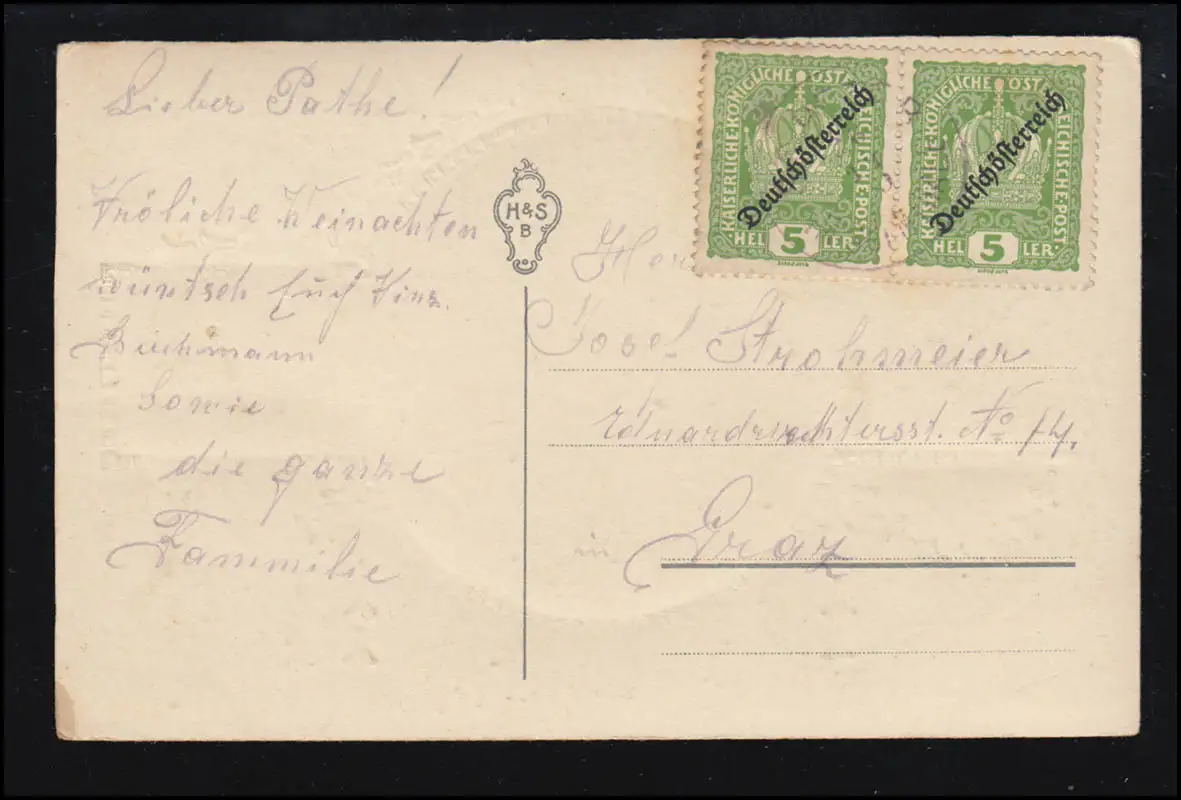 AK Noël: représentation des crèches avec des anges, couru à Graz