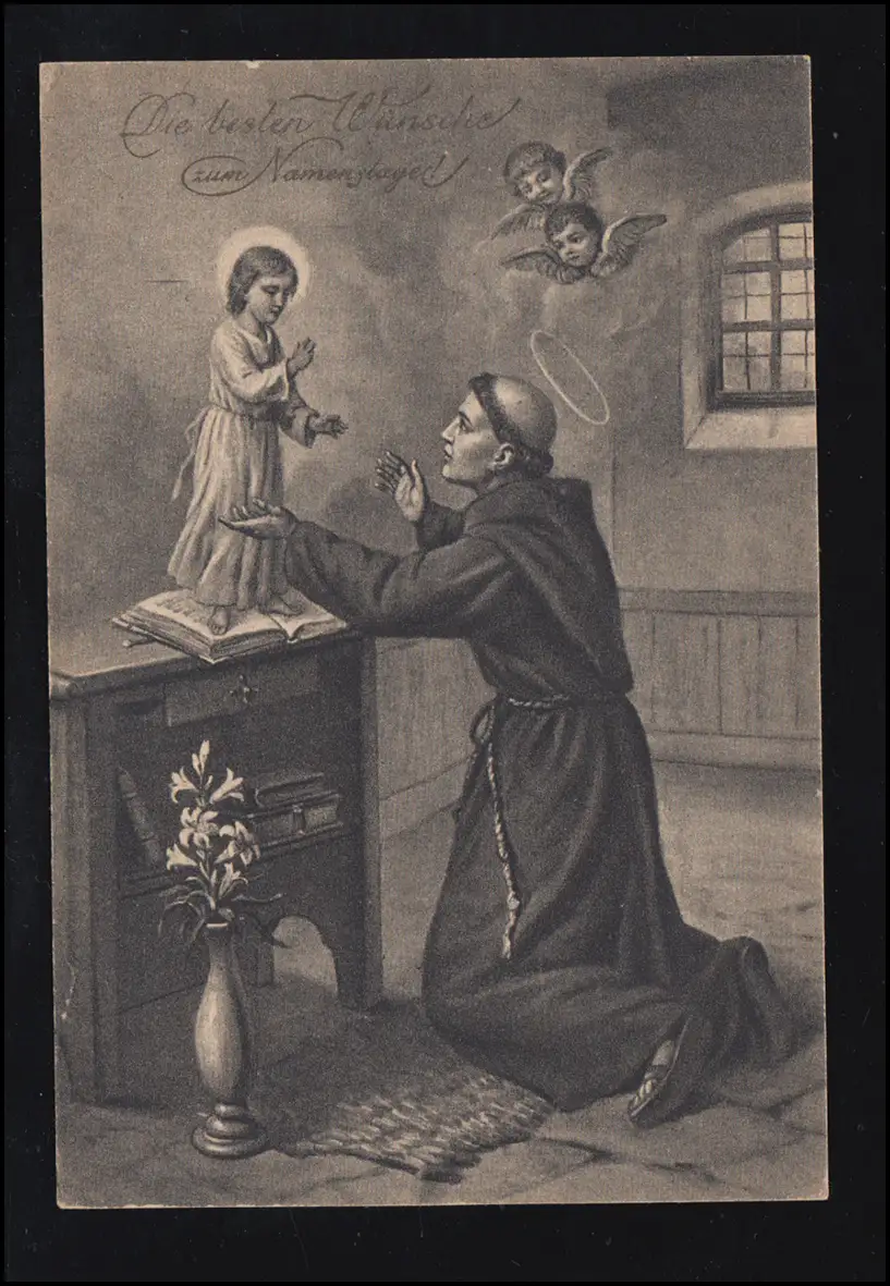 AK Nom: Le moine priant apparaît enfant du Christ et ange, inutilisé
