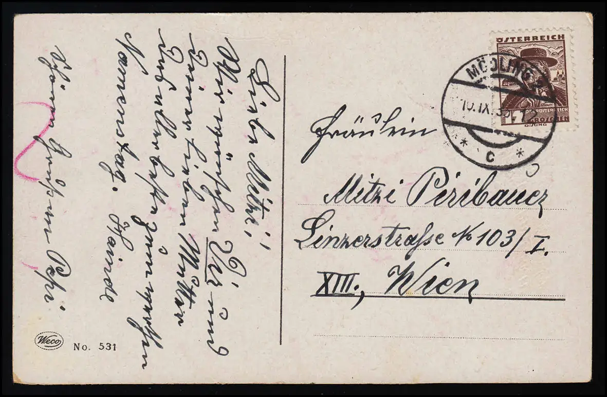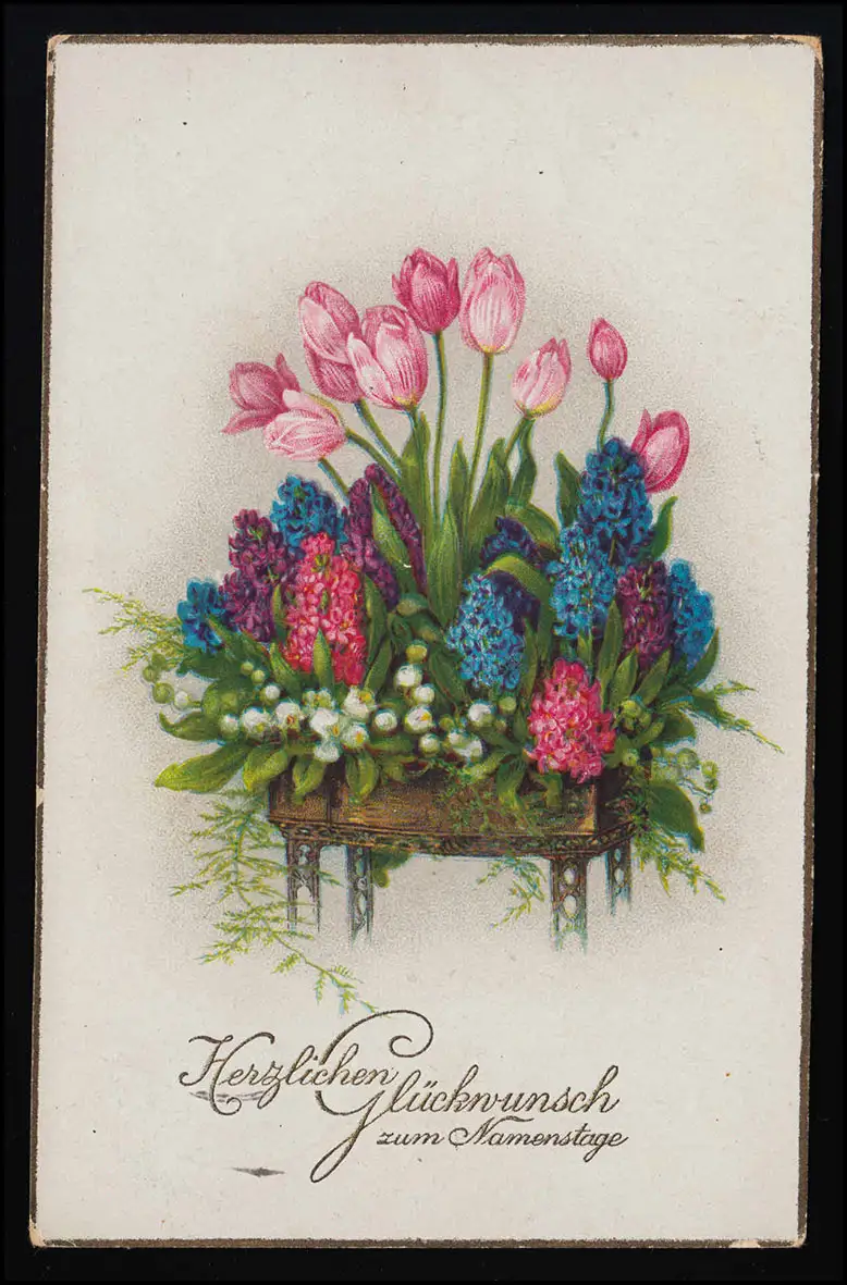 AK Nomstag Tulpen Hyazinthen, Goldrand, WECO No. 531, MÖDLING 10.9.1935