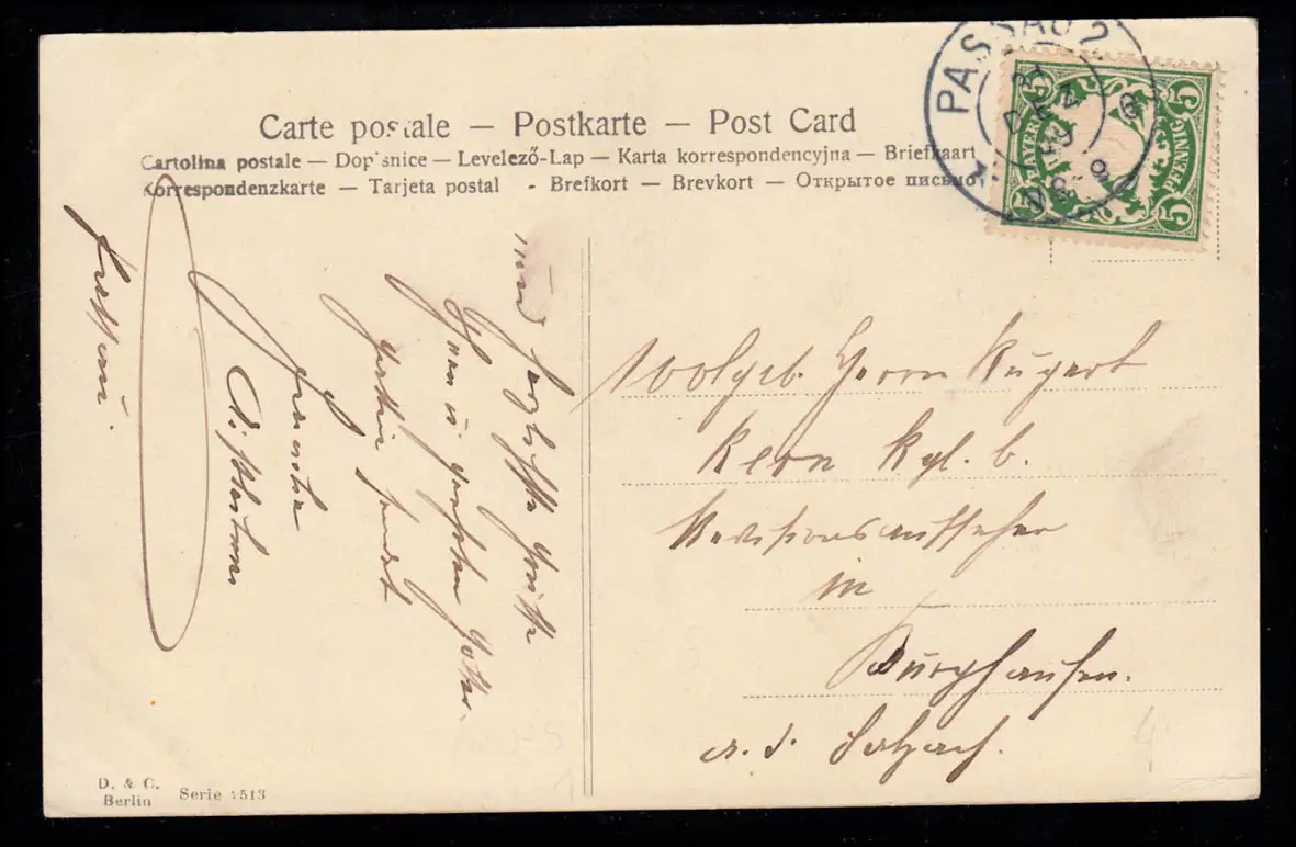 AK Nouvel An: Bérets et fleurs, PASSAU 31.12.1909