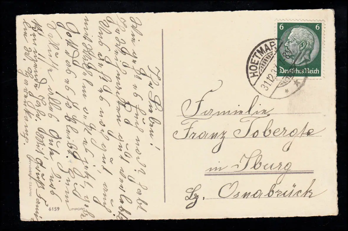 AK Nouvel An: Cloche avec branches de sapin sur Dorfidylle, HOETMAR 31.12.1937