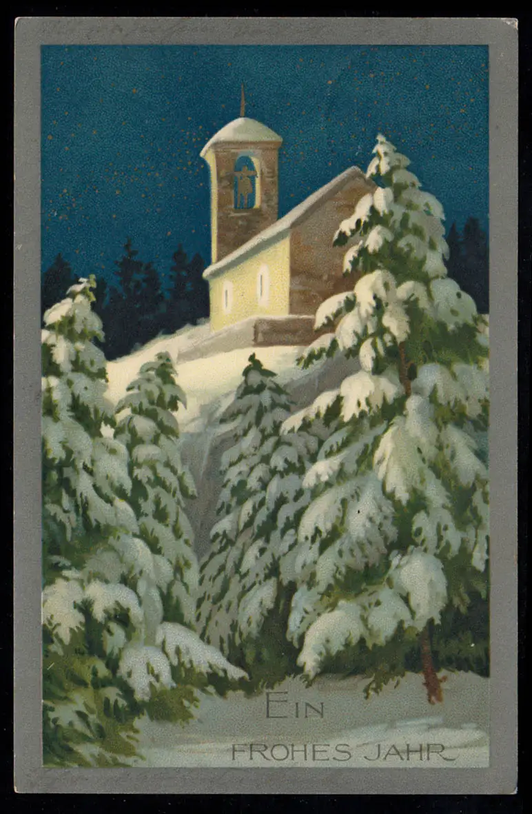 AK Nouvel An: Église du village avec cloche la nuit, MÖCKMÜHL (WURTT.) 30.12.1938