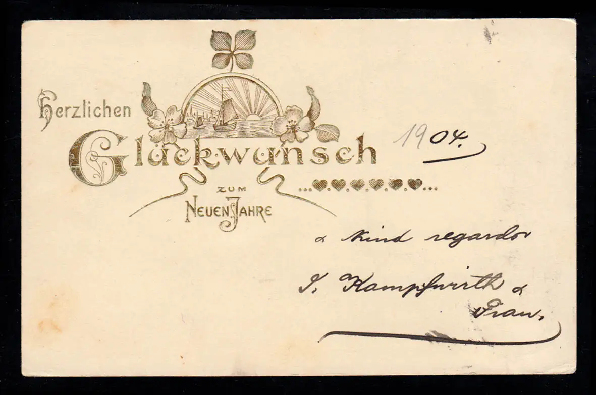 AK Nouvel An: Félicitations dorées - Mer avec bateaux, ALTONA (ELBE) 31.12.1903