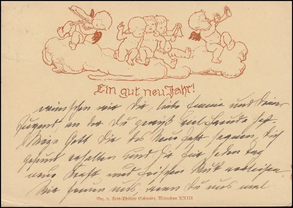 AK Nouvel An: Fritz-Philipp Schmidt: Anges musiciens sur nuage, 30.12.1938