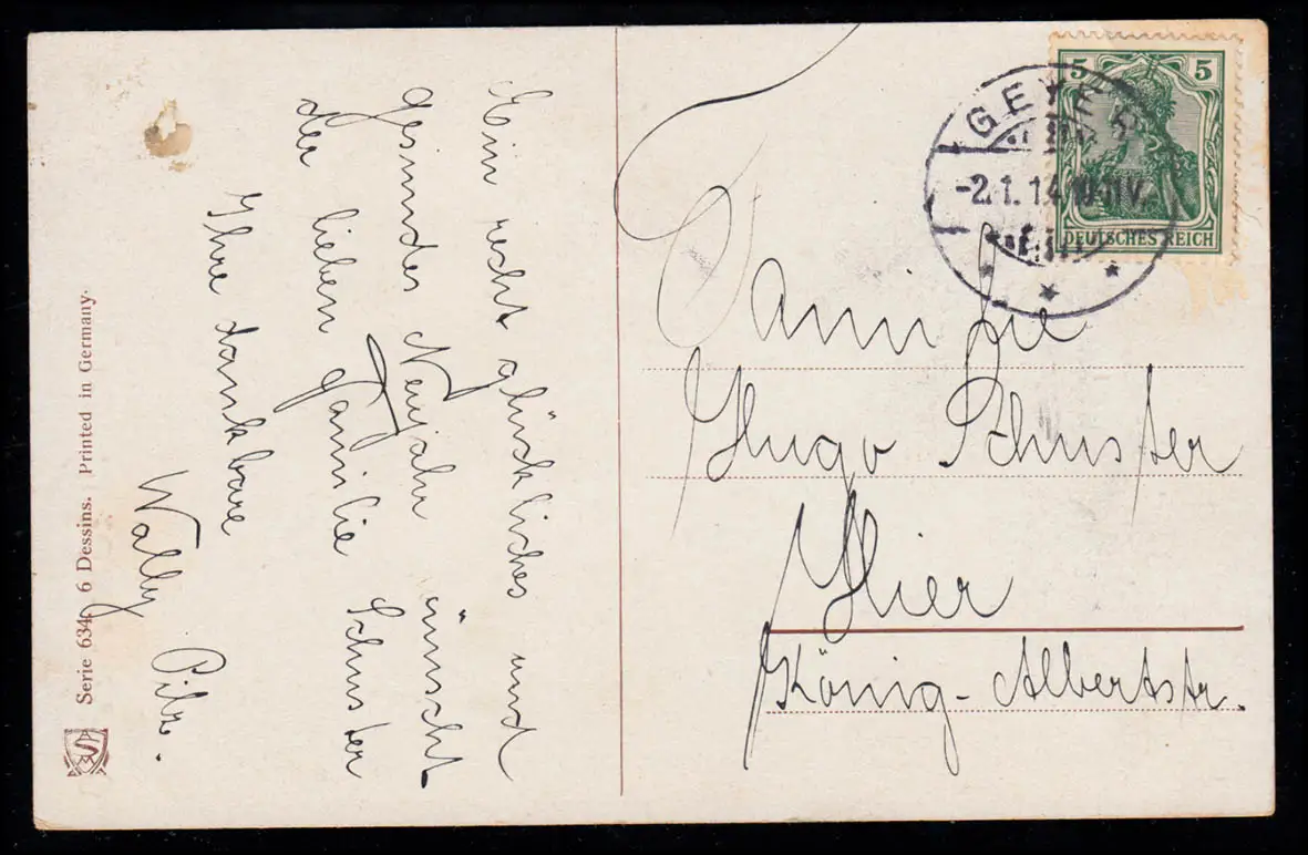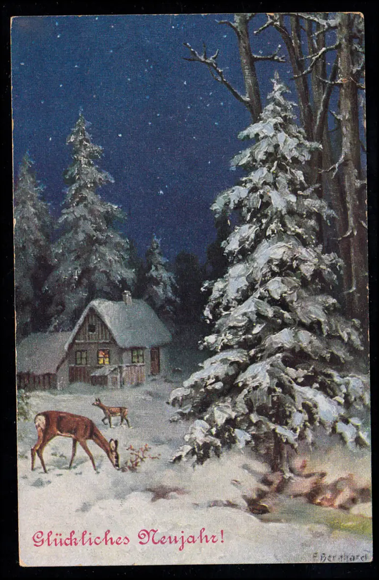 AK Nouvel An: Lumière des bois en hiver avec des cerfs la nuit, GEYER 2.1.1914