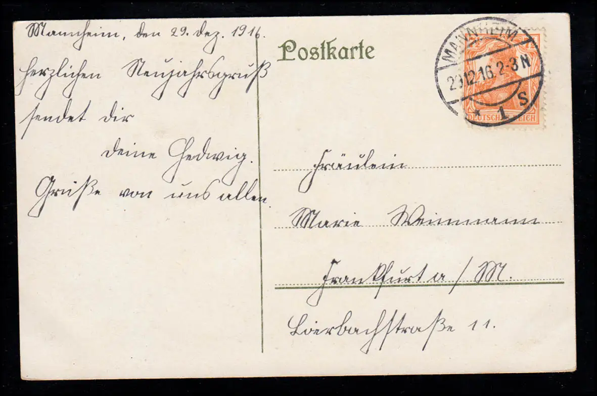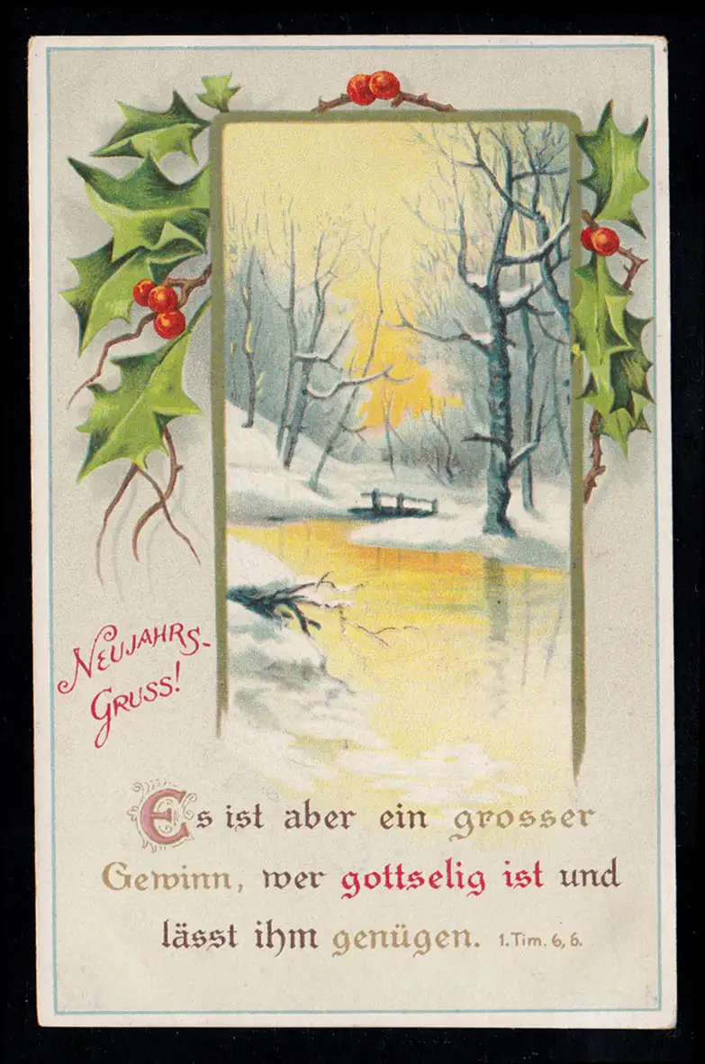 AK Nouvel An: Paysage hivernal avec Psaume 6.6., MANNHEIM 29.12.1916