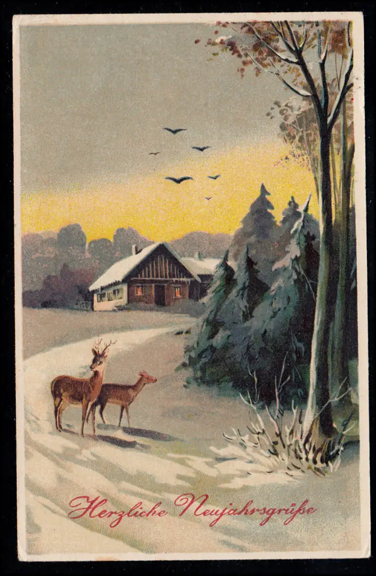AK Nouvel An: Rand de la forêt avec cerfs, oiseaux, LUDWIGSBURG Bureau de poste n°1 - 30.12.1925