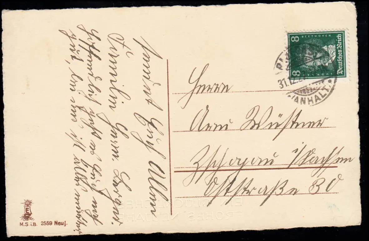 AK Nouvel An: Trois filles avec des porte-bonheur dans la neige, RADEGAST 31.12.27