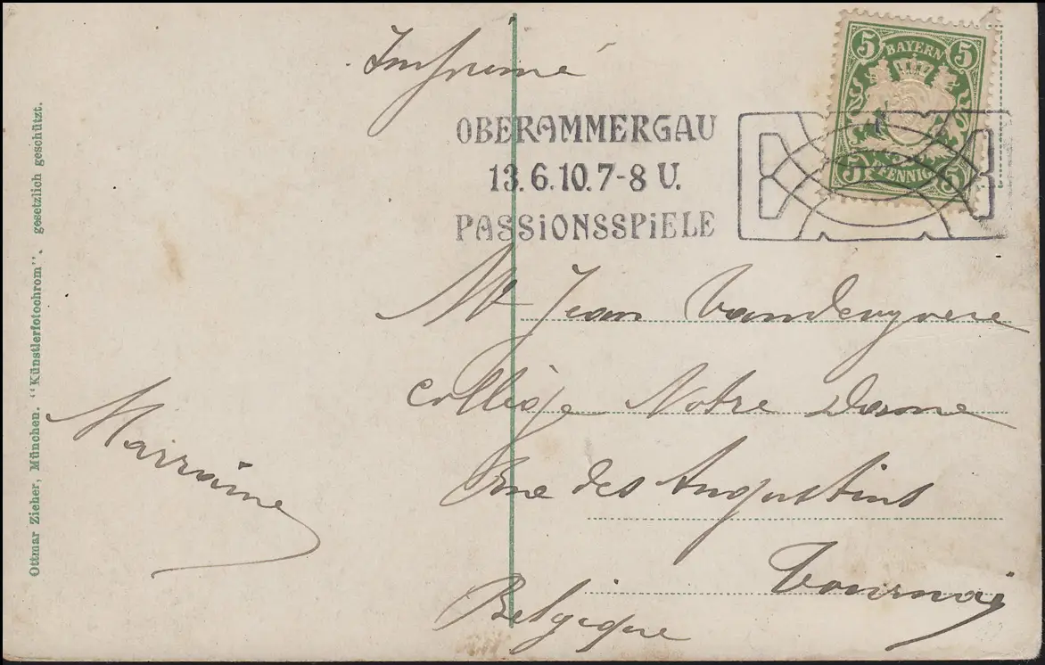 AK Oberammergau Route avec église, OCHERAMMERGAU PÂCE DE PASSION 13.6.10