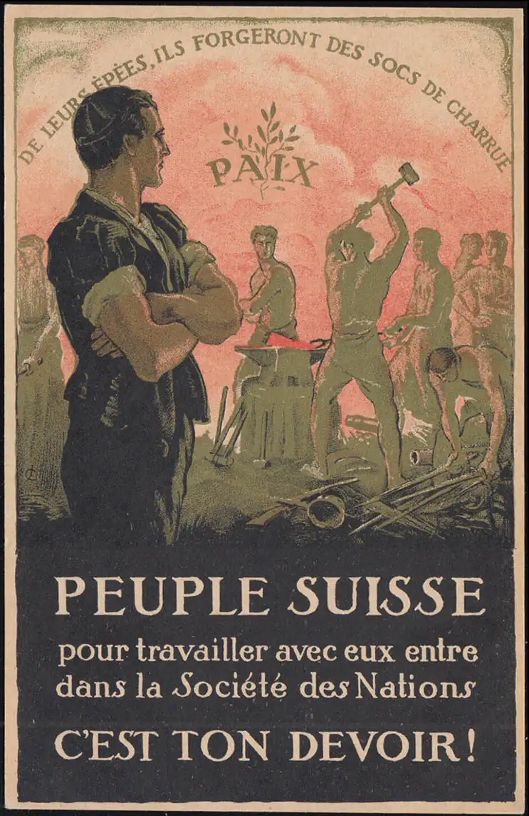 De Leurs epees ils forgeront des socs de charrue / Peuple Suisse pour Travailler avec et entre dans la société des nations c'est ton devoir! Examen: original Référence produit: 00000000017581>Remarque: Cet article n'a été publié qu'une seule fois. Vous recevrez exactement l'article représenté.