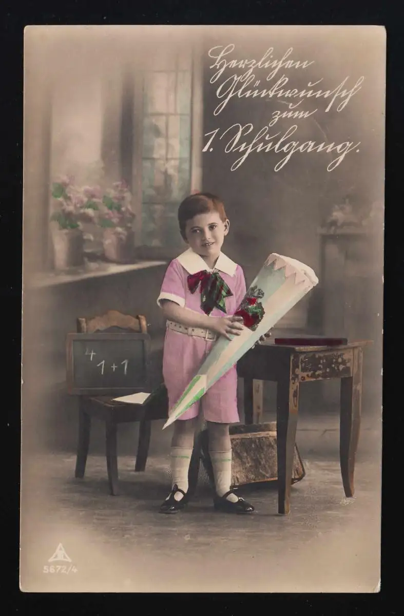 AK PH 5672/4 Costume rose sac d'école devant la tablette, basse ou basse 20.4.27